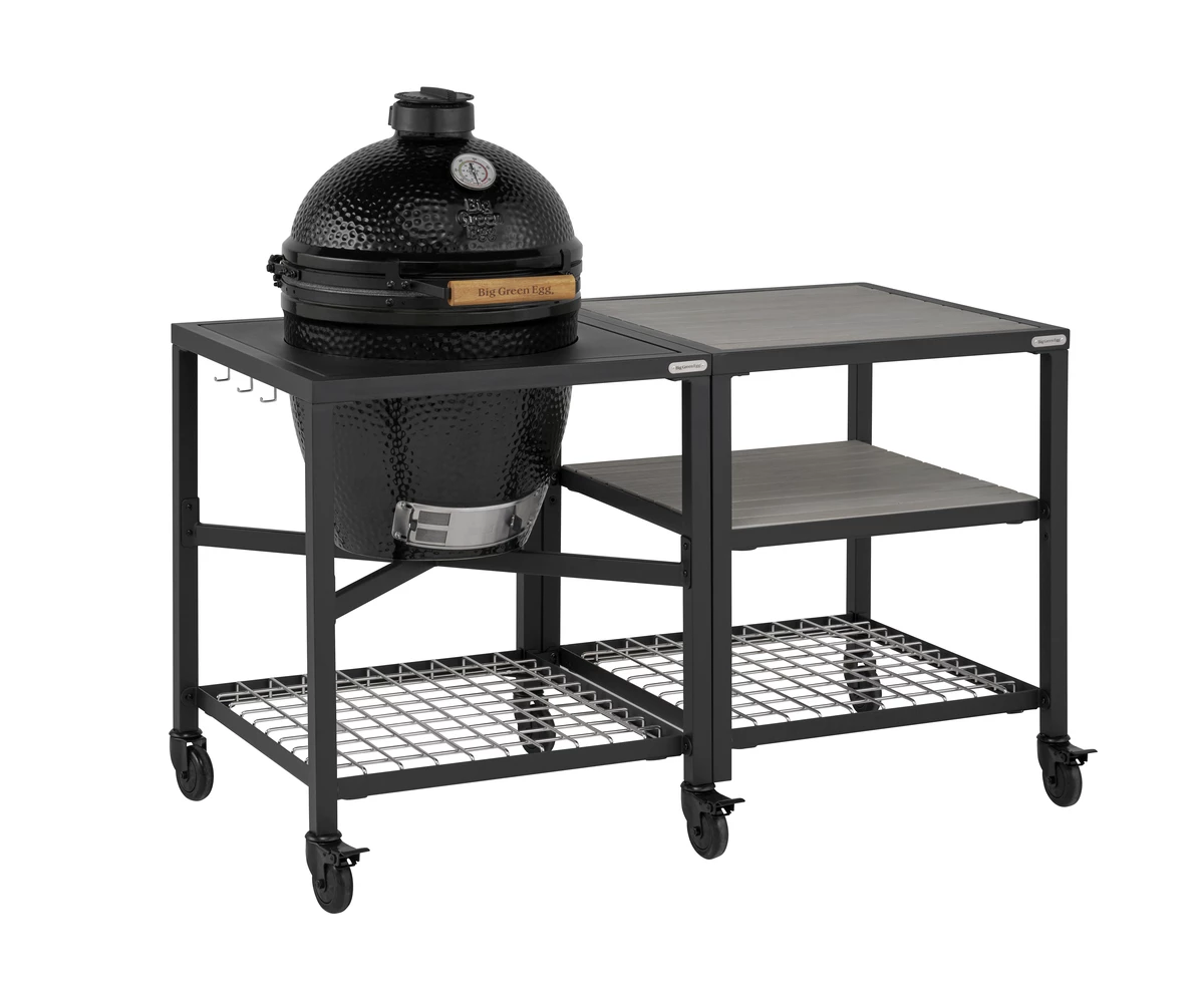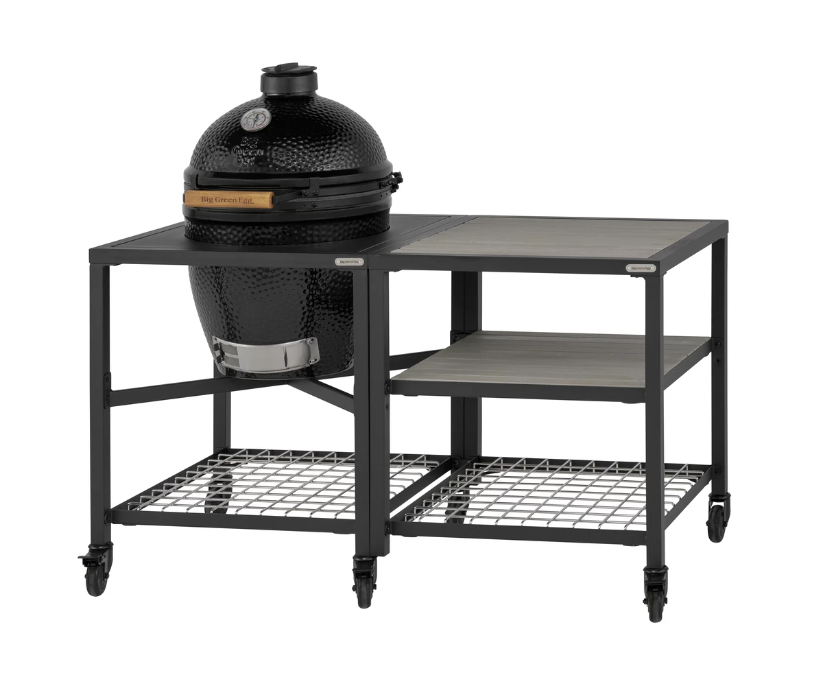 Die Big Green Egg The Onyx Large Outdoor Kitchen ist eine komplette Outdoor-Küche mit exklusivem Kamado-Grill, EGG-Rahmen, Arbeitsfläche und Zubehör für vielseitiges und stilvolles Kochen im Freien.