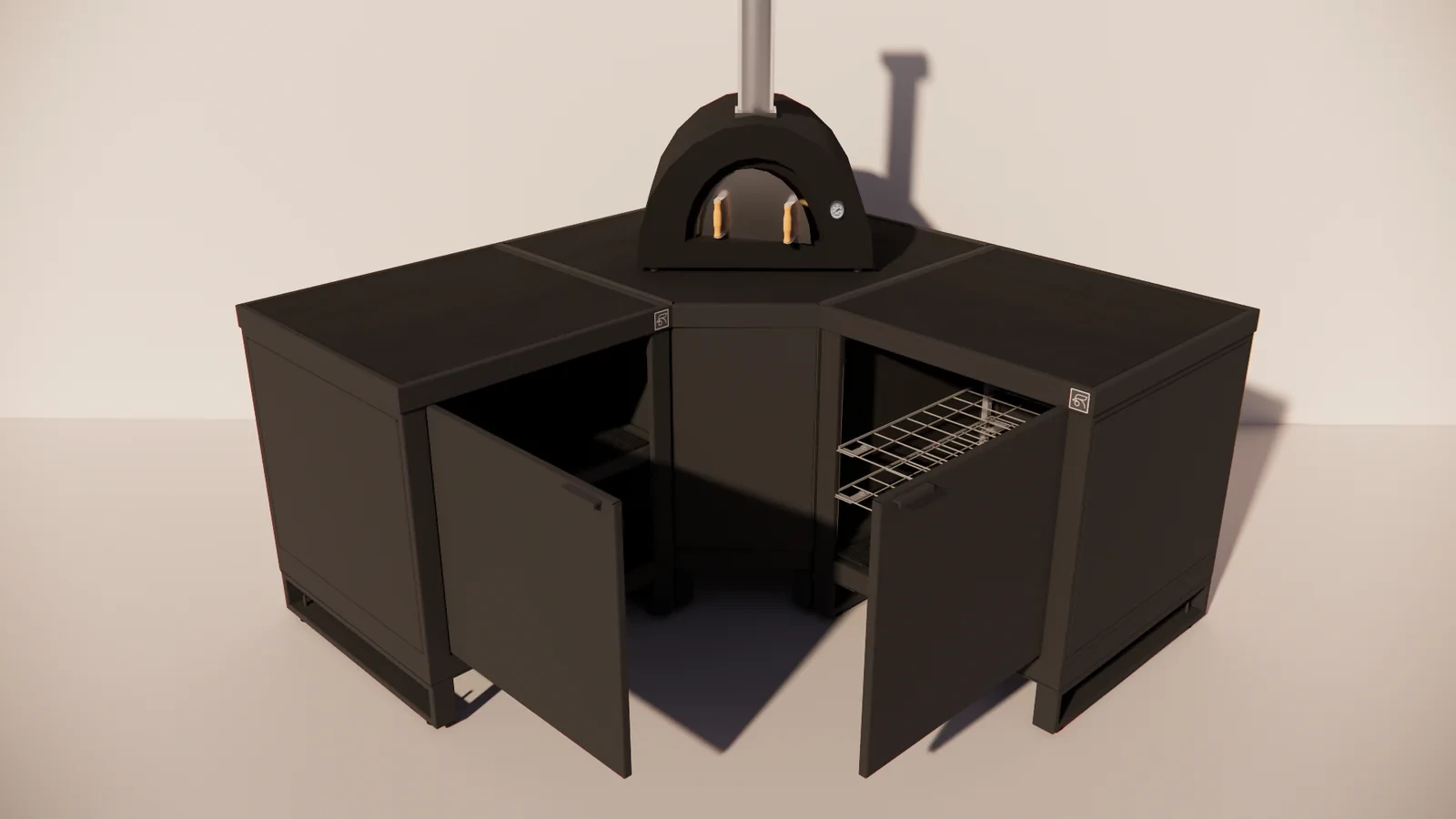Die Anlage bietet Platz für einen großen Kamado (wie den Big Green Egg XL/XXL oder Yakiniku XLarge) oder einen Pizzaofen von Marken wie Gozney, Alfa oder Ooni. So können Sie Kochen, Backen und Grillen an einem Ort kombinieren. Die beiden Rubix Single Module bieten zusätzliche Arbeitsfläche und Stauraum und ermöglichen Ihnen effizientes und komfortables Arbeiten beim Kochen im Freien.
