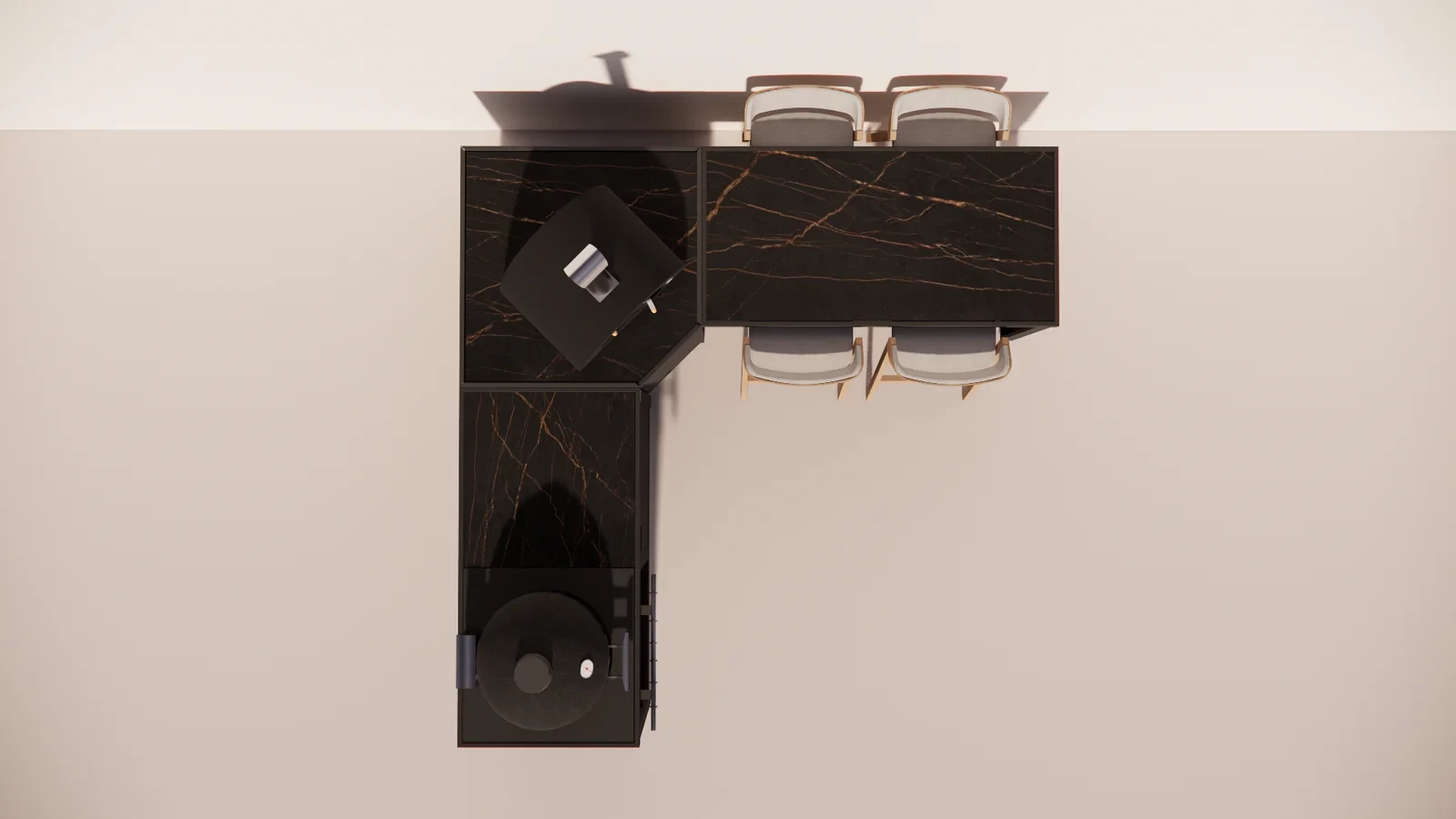 Bar-Setup mit Sitzgelegenheiten für vier Personen
