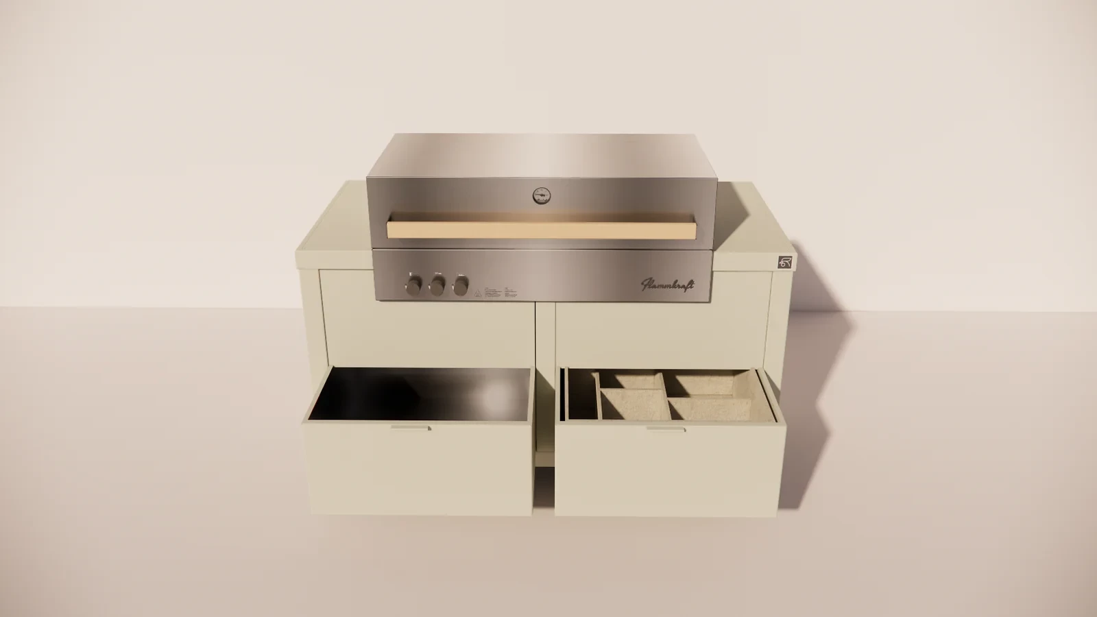 Mit ihrem eleganten Design und der funktionalen Aufteilung fügt sich diese Outdoor-Küche perfekt in den charakteristischen Roostr-Stil ein: modern, robust und auf Benutzerfreundlichkeit ausgelegt.