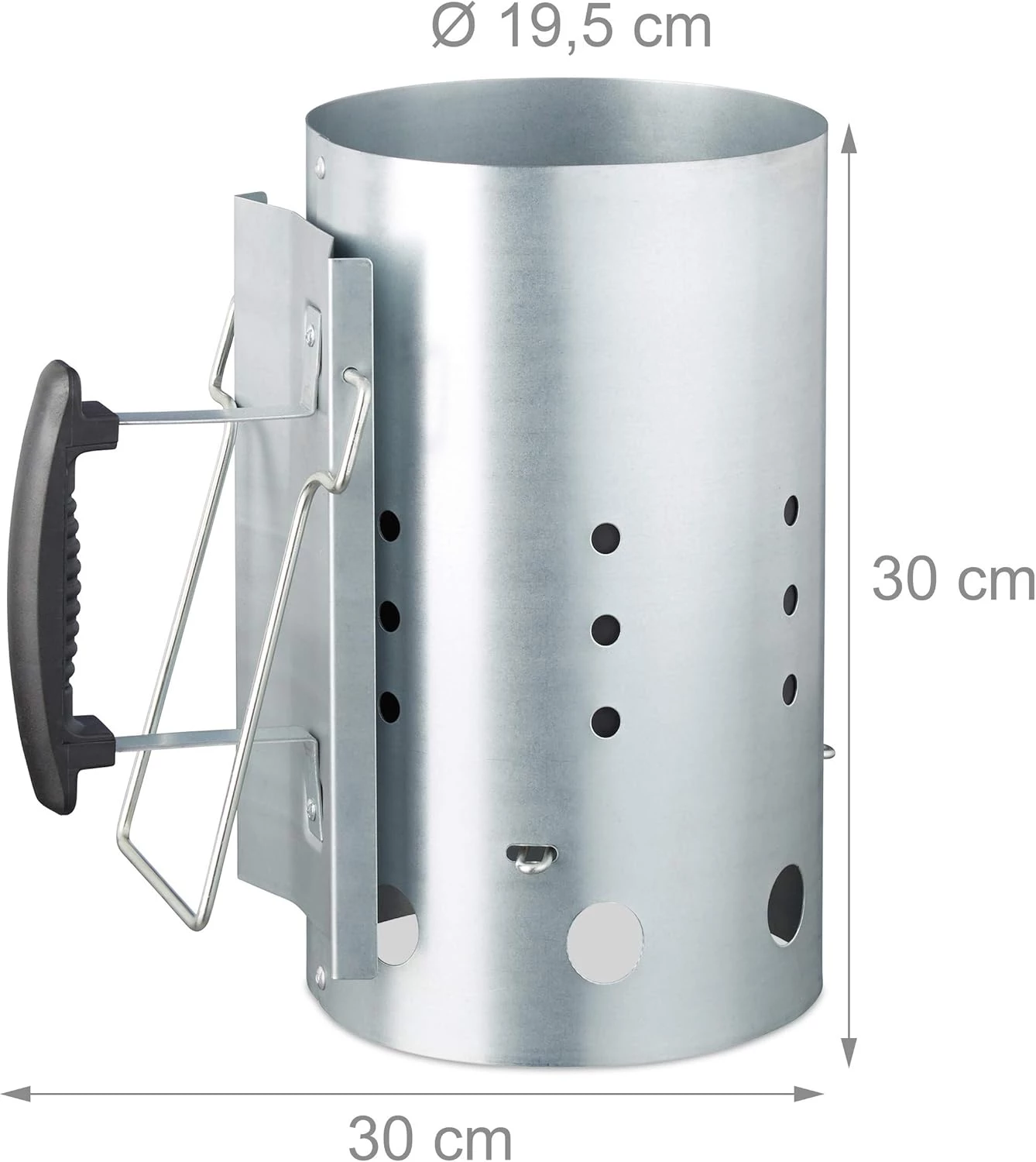 Der Anzündkohleanzünder ist mit einem Sicherheitsgriff und einem zusätzlichen zweiten Griff ausgestattet, sodass Sie die heißen Kohlen kontrolliert und sicher ausgießen und verteilen können. So verteilen Sie die Kohlen mühelos gleichmäßig auf Ihrem Grill und erzielen eine konstante Temperatur sowie optimale Grillergebnisse.