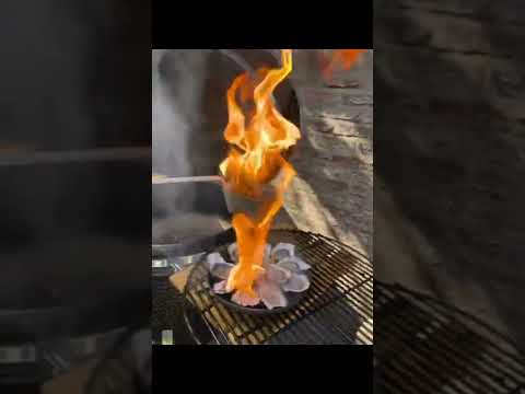 Legen Sie das Flambadou direkt in die heißen Kohlen und erhitzen Sie es. Sobald das Flambadou heiß ist, legen Sie den Fettwürfel hinein. Dank der Trichterform tropft das geschmolzene Fett perfekt über die Zutaten, was zu einer köstlichen knusprigen Kruste und einem einzigartigen Geschmack führt. Die Verwendung des Flambadou schafft ein spektakuläres Erlebnis, da die wunderschön brennenden Kohlen und das brutzelnde, brennende Fett zusammenkommen. Das aus Edelstahl gefertigte Flambadou kann im Kamado für einen unvergesslichen Grillabend verwendet werden.