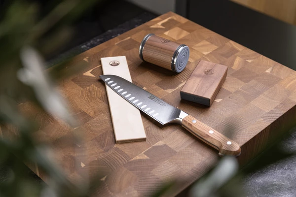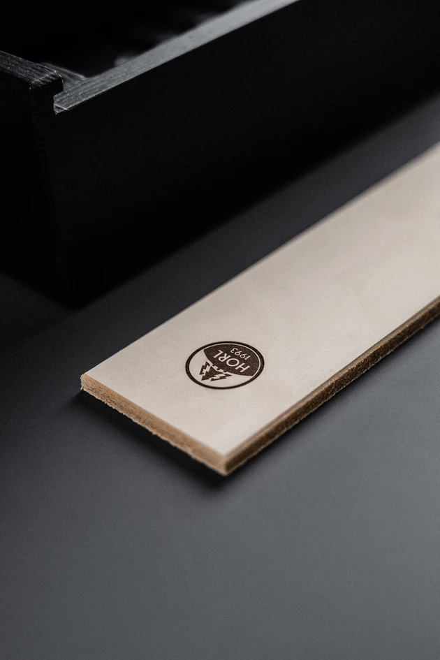Das HORL®-Leder wird aus pflanzlich gegerbtem Rindsleder hergestellt. Das Schärfen des Messers mit dem Leder verleiht ihm nach jedem Schärfen ein professionelles Finish. Die feinporige Oberfläche des Leders entfernt selbst kleinste Schleifpartikel und sorgt so für eine glatte, saubere Klinge.
