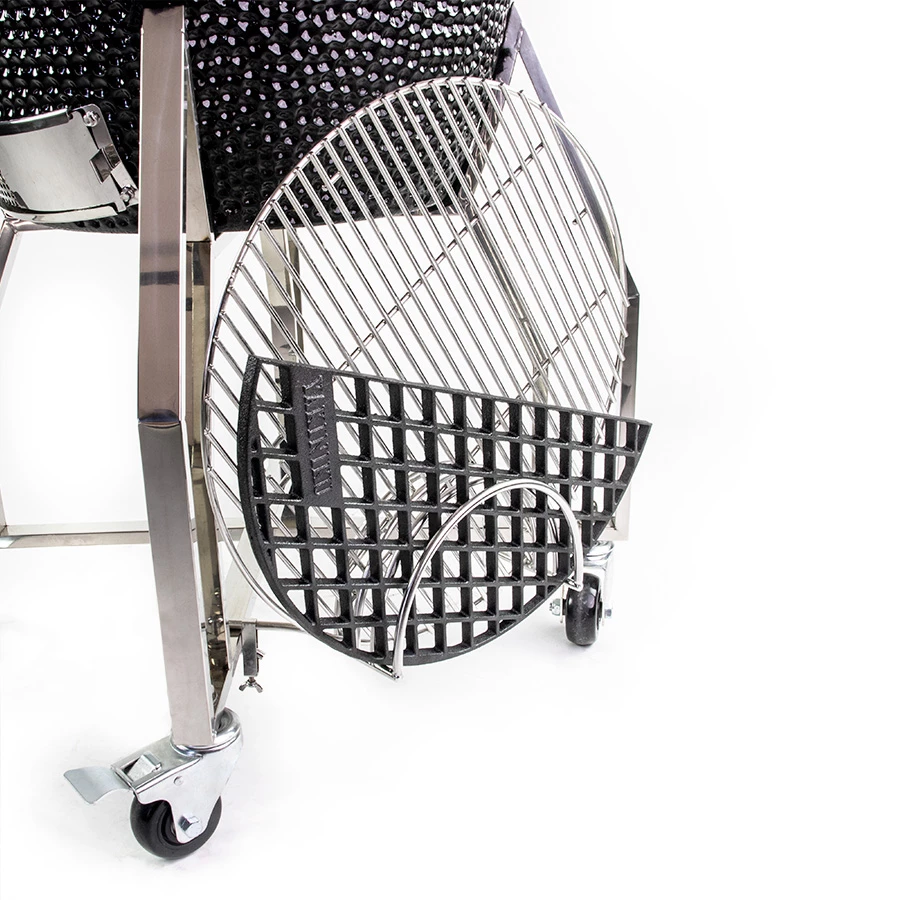 Dieser Zubehörhalter ist unverzichtbar. Dadurch können Sie alle Teile, die Sie in Ihrem Kamado verwenden, problemlos verstauen. Befestigen Sie den Zubehörhalter einfach an der Basis Ihres Kamado, sodass Sie beim Grillen schnell Ihre Konfiguration ändern können. Dieser Halter ist für das MEDIUM- und LARGE-Modell mit Sockel geeignet.