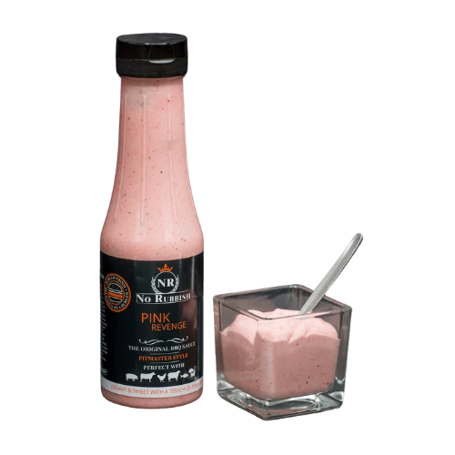 Entdecken Sie den einzigartigen Geschmack der No Rubbish Pink Revenge BBQ Sauce – eine samtig-süße und cremige Barbecue-Sauce mit einer überraschend pikanten Note vom Pink Devil. Diese Sauce vereint das Beste aus zwei Welten: die samtige Süße einer klassischen BBQ-Sauce und eine subtile Würze, die ein aufregendes Geschmackserlebnis bietet.
