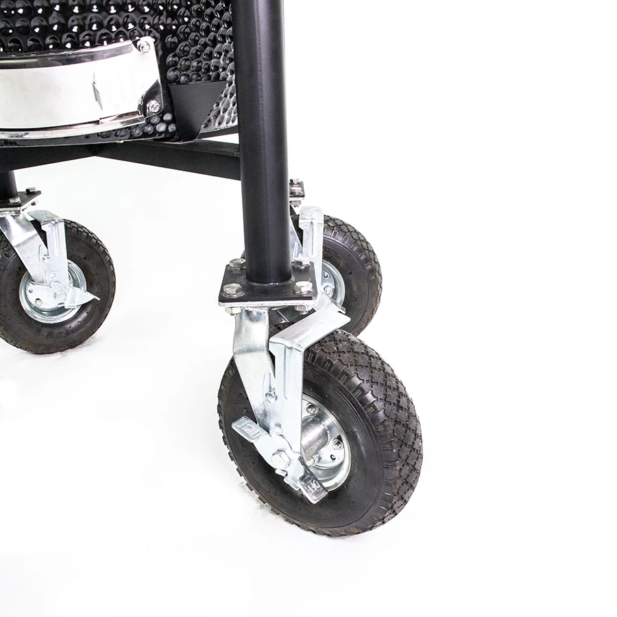 Dit robuuste onderstel is ontworpen voor stoere mannen die zich niet laten tegenhouden door grindpaden of zanderige ondergronden. Met het allround onderstel van YAKINIKU® kun je je LARGE Kamado moeiteloos over diverse terreinen verplaatsen. Zonder tafelnest kun je de Kamado eenvoudig op dit onderstel plaatsen. Zelfs op gras werkt het perfect! Met de vloermat bescherm je het gras tegen eventuele brandplekken.