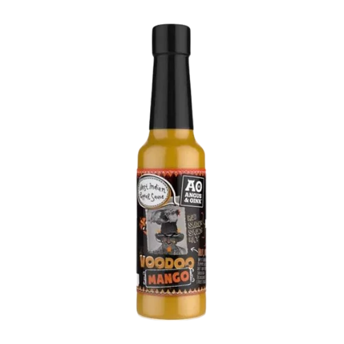 Bestel nu en voeg een vleugje tropische hitte toe aan je keuken met Angus & Oink Voodoo Mango Hot Sauce!
