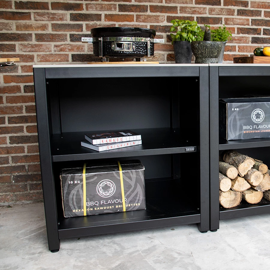 Der Rahmen dieses Sets besteht aus pulverbeschichtetem Stahl und verleiht Ihrer Outdoor-Küche ein robustes Aussehen. Darüber hinaus ist der Stahl verzinkt, was eine Schutzschicht gegen Rostbildung bildet. Die Küche wird inklusive Grundbrett, Balken, Rückwand und Beinen geliefert. Die Küchenplatte besteht aus gesintertem Stein, was mehrere Vorteile hat. Die Oberfläche ist frost-, hitze-, verfärbungs- und kratzfest und zudem leicht zu reinigen. Die Outdoorküche ist in verschiedenen Größen und Ausführungen erhältlich und wird inklusive Montagesatz, Anleitung und Bauzeichnung geliefert.