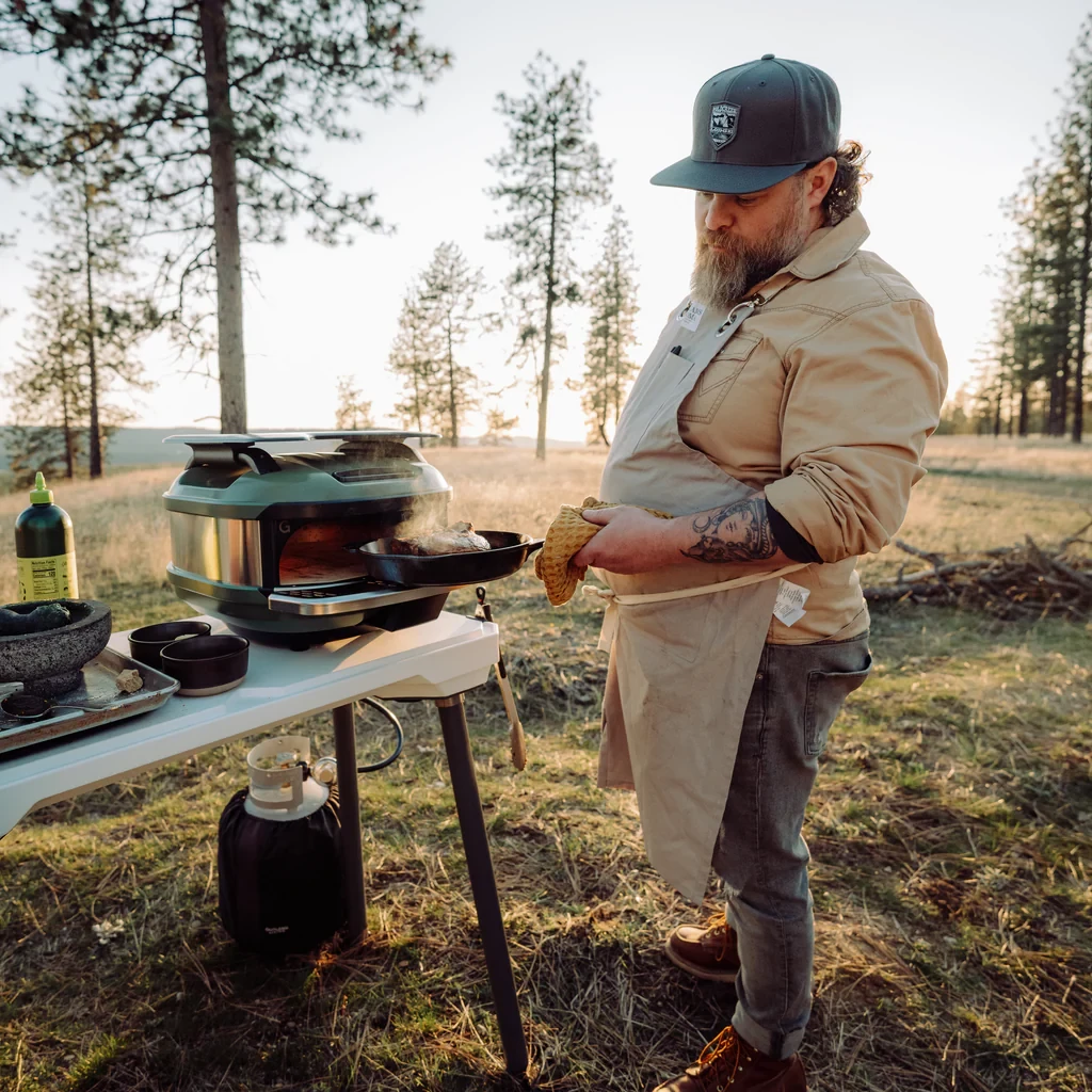 De Tread Mantel bevestig je eenvoudig en zonder gereedschap aan de Gozney Tread, en dankzij het stevige ontwerp biedt hij een betrouwbare extra werkplek, waar je ook bent.