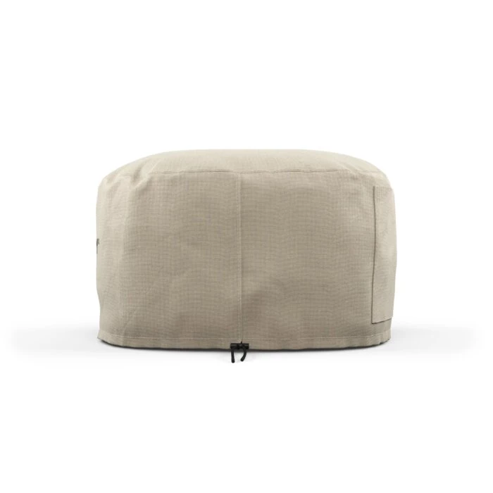Die Abdeckung besteht aus strapazierfähigem 350 g/m² Polyester mit einer langlebigen PVC-Beschichtung, die Wasser effektiv abweist und UV-beständig ist. Mit dem verstellbaren Knebelverschluss lässt sich die Abdeckung sicher um den Ofenboden spannen, sodass sie auch bei starkem Wind an Ort und Stelle bleibt.