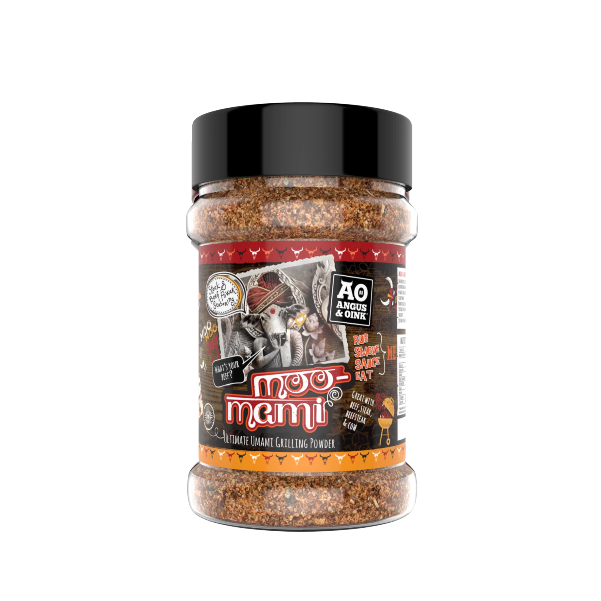 Bringen Sie Ihr Grillerlebnis mit Angus & Oink Moo Mami auf die nächste Stufe. Diese sorgfältig zusammengestellte Gewürzmischung unterstreicht die natürlichen Aromen von Rindfleisch und erzeugt beim Grillen oder Räuchern eine markante Kruste. Umami-reiche Zutaten wie Shiitake, Sojasauce und Seetang verleihen Ihren Gerichten eine besondere Note, während Ananaspulver dank des natürlichen Enzyms Bromelain das Fleisch zarter macht.
