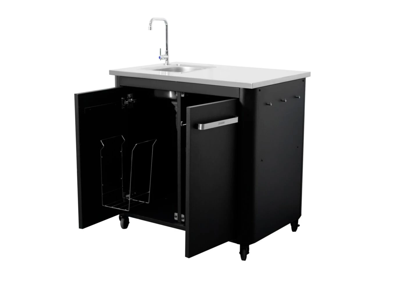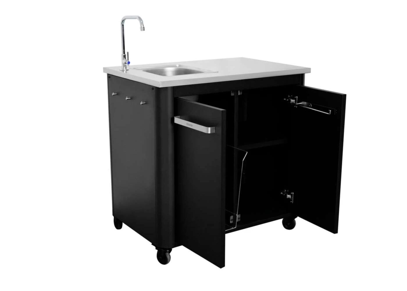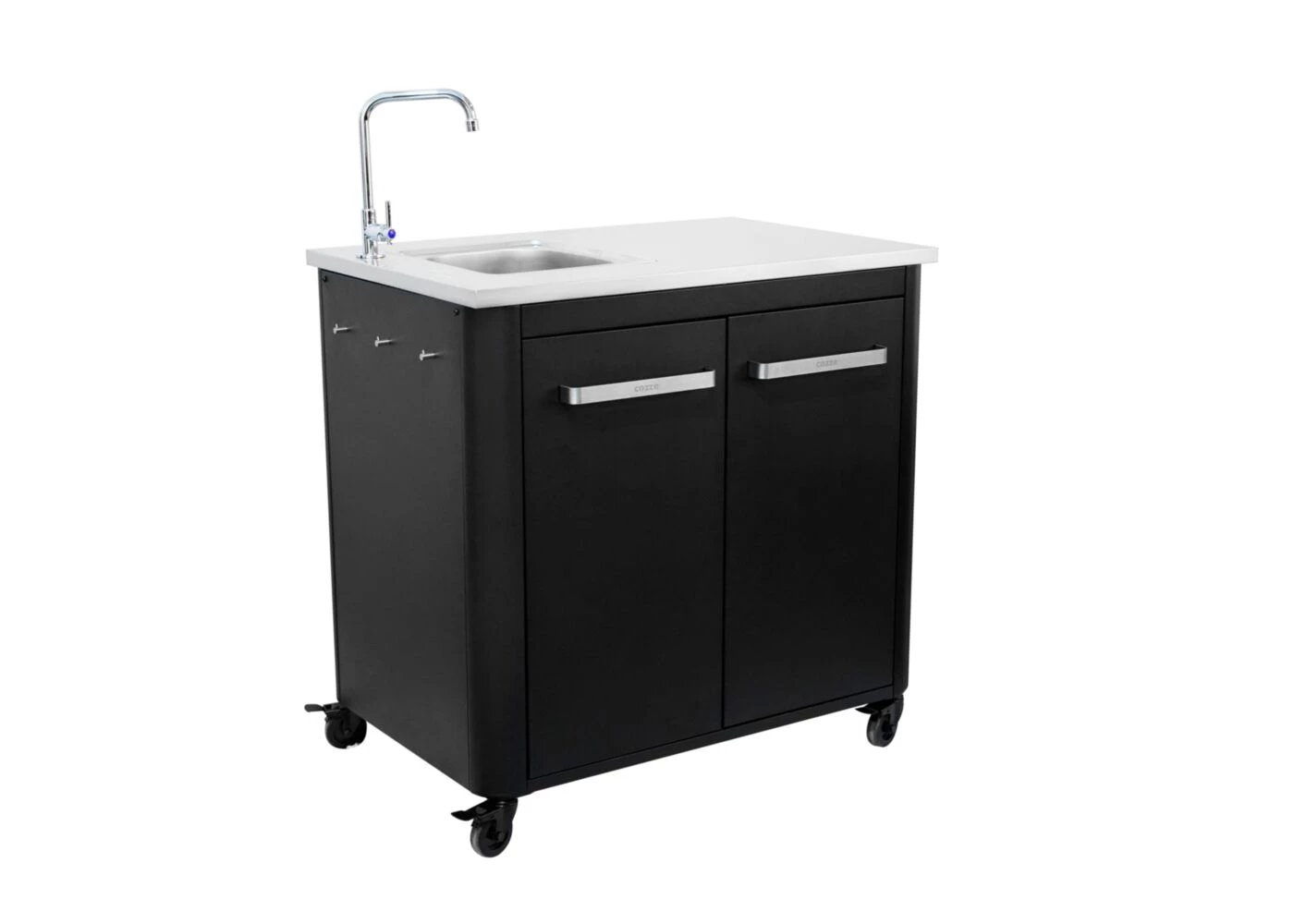 De spoelbak is gemaakt van duurzame materialen en is eenvoudig te koppelen aan een tuinslang of externe wateraansluiting. De vervangbare kraan geeft je flexibiliteit voor elk type buitenkeuken.