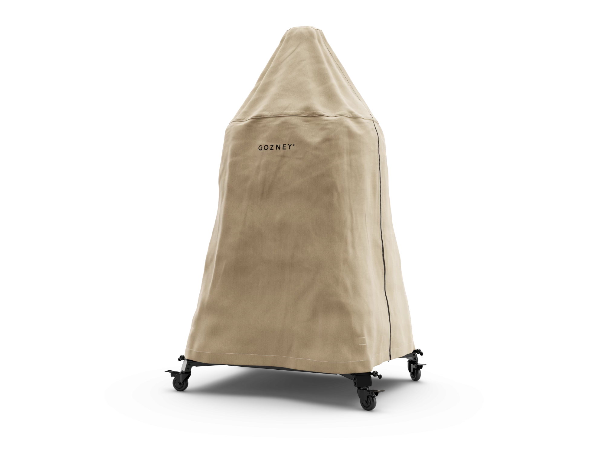 Die Abdeckung ist mit robusten Knebelverschlüssen ausgestattet, die eine einfache Befestigung auch bei starkem Wind ermöglichen. Dank des cleveren Designs kann die Abdeckung auch verwendet werden, wenn der Kaminsims auf dem Ofen montiert ist. Regen, Wind, Frost, Salz, Insekten oder Vögel – nichts kann Ihrem Gozney Dome und Ständer etwas anhaben.