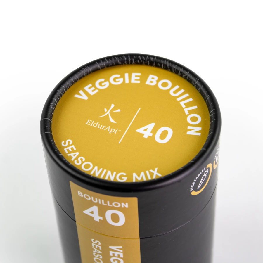 EldurApi 40 Gemüsebrühe, Ihr leckerer Verbündeter in der Küche. Egal, ob Sie eine herzhafte Suppe, eine leckere Soße oder einen leckeren Eintopf zubereiten, diese Gemüsebrühe verleiht jedem Bissen einen raffinierten Geschmack. Vielseitig einsetzbar und pulverförmig, sodass Sie die Dosierung selbst bestimmen können. Ideal für Gemüsesuppe, Saucen und andere Gerichte. Der einzigartige würzige Geschmack und das duftende Aroma, angereichert mit Meerrettich, Zwiebeln und Lauch, machen diese Veggie-Bouillon zu einem unverzichtbaren Gewürz für jede kulinarische Kreation.