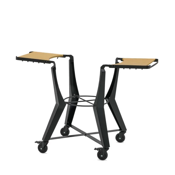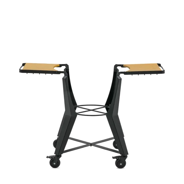 Die hellen Bambus-Beistelltische bilden einen stilvollen Kontrast zum mattschwarzen Stahlrahmen und verleihen dem Ganzen einen modernen und robusten Look. Der Sockel ist zudem mit praktischen Haken zum Aufhängen von Grillbesteck und Zubehör sowie leichtgängigen Rollen ausgestattet, mit denen Sie Ihren Kamado mühelos bewegen können.
