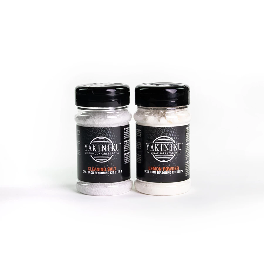 De Gietijzer Seasoning Kit is onmisbaar om je gietijzeren producten in uitstekende conditie te houden. Dankzij het grove zeezout en citroenpoeder blijven je producten schoon en beschermd. Onderhoud van je gietijzeren producten is eenvoudig met deze seasoning kit. Start met het halveren van een aardappel, die je samen met grof zeezout gebruikt om roest en resten te verwijderen. Een vochtige doek kan ook worden gebruikt als alternatief voor de aardappel. Na het afspoelen, plaats je het gietijzeren product in de voorverwarmde Kamado op 230°C en bestrooi je het royaal met citroenpoeder. Laat het een half uur staan; het poeder smelt en vormt een beschermende laag. Herhaal dit proces 2 à 3 keer voor optimale resultaten.