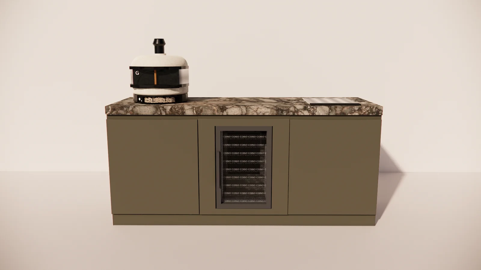 Das Herzstück der Ausstattung ist die professionelle Teppanyaki-Platte, mit der sich Gerichte – von zartem Gemüse bis hin zu saftigen Fleisch- oder Fischstücken – schnell und gleichmäßig zubereiten lassen. Der integrierte Kühlschrank hält Zutaten und Getränke griffbereit, ideal für lange Sommerabende. Die gesamte Einheit ist mit einer luxuriösen Allure-Arbeitsplatte versehen, die nicht nur edel aussieht, sondern auch hitze-, feuchtigkeits- und witterungsbeständig ist.