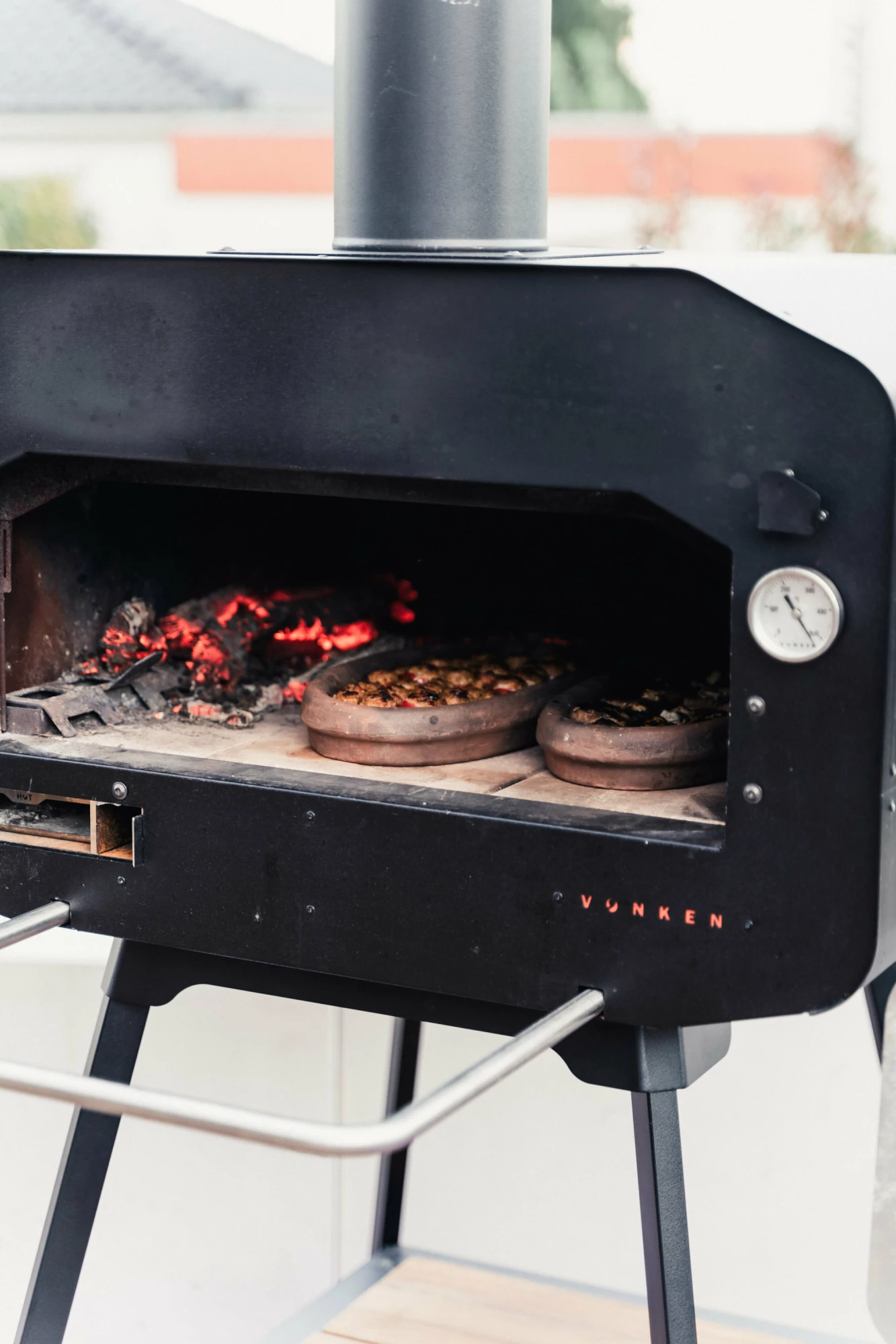 Der Vonken Home ist ein mittelgroßer bis großer Premium-Outdoor-Backofen, der sich durch Vielseitigkeit, Leistung und Sicherheit auszeichnet. Dank seines modularen Designs und des 4 cm dicken Doppelbodens gelingen Ihnen mühelos perfekte Pizzen, handwerklich gebackenes Brot, aromatische Fleischgerichte und frisch geräucherter Fisch. Der Ofen kann mit Holz oder Holzkohle befeuert werden und garantiert so authentischen Geschmack und ein einzigartiges Outdoor-Kocherlebnis.