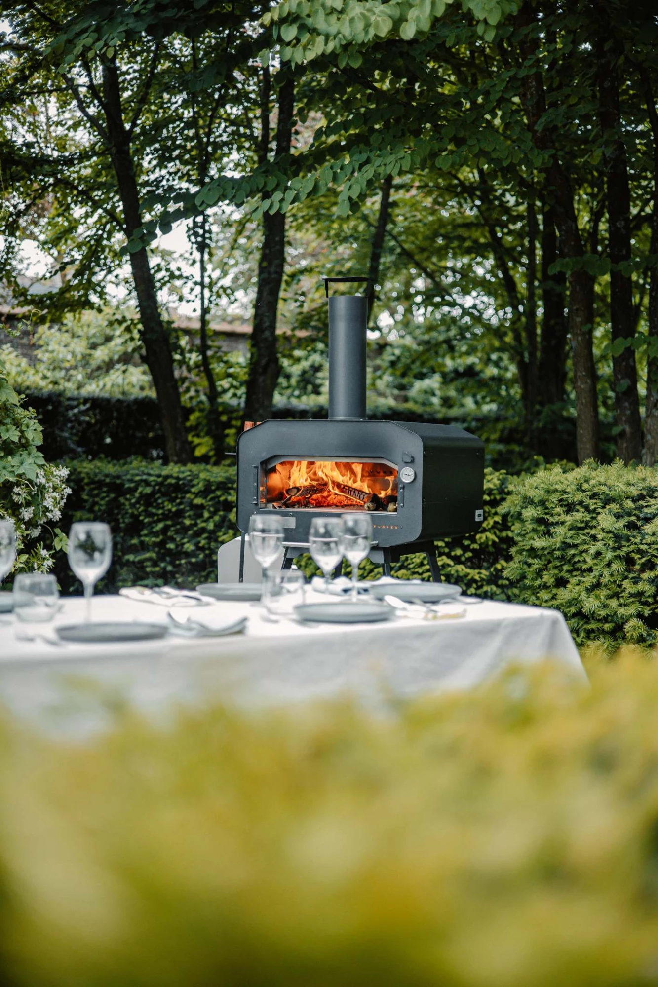 Hochwertiger, mit Holz und Holzkohle befeuerter Außenofen