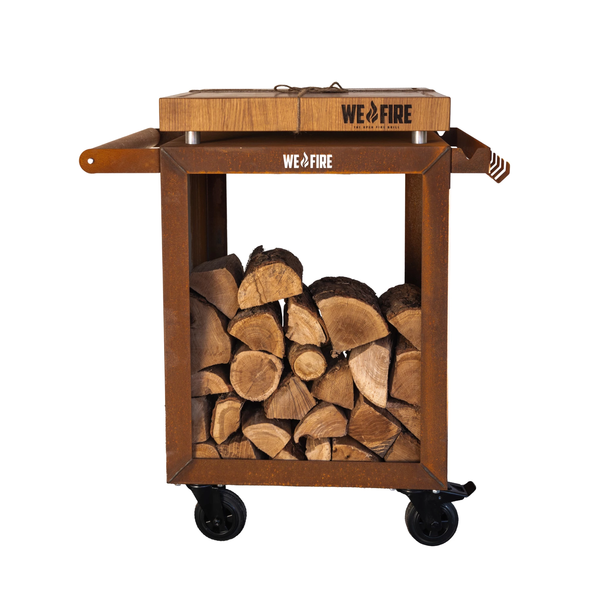 Die robuste Konstruktion und die Verwendung langlebiger Materialien gewährleisten eine lange Lebensdauer und eine stabile Arbeitsfläche. Die Pro-Version bietet zusätzliche Stabilität und ein modernes Design, das perfekt zur WeFire Pro-Serie passt. Die großzügige Arbeitsfläche bietet Platz für Gewürze, Werkzeuge, Zubehör und Serviergeschirr – alles ist griffbereit.