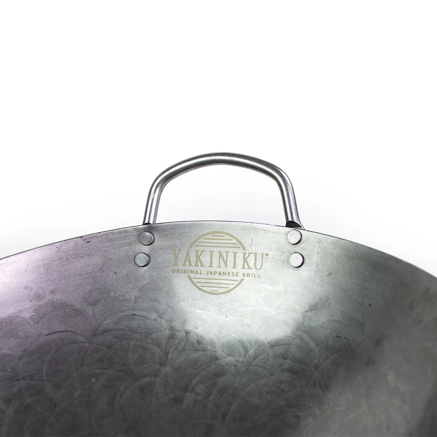 Wanneer je de wokpan ontvangt, is deze al bedekt met fabrieksolie om roestvorming tijdens transport te voorkomen. Begin met grondig schrobben van deze laag met een schuurspons en water. Zodra dit is voltooid, is je wok klaar om verhit te worden.