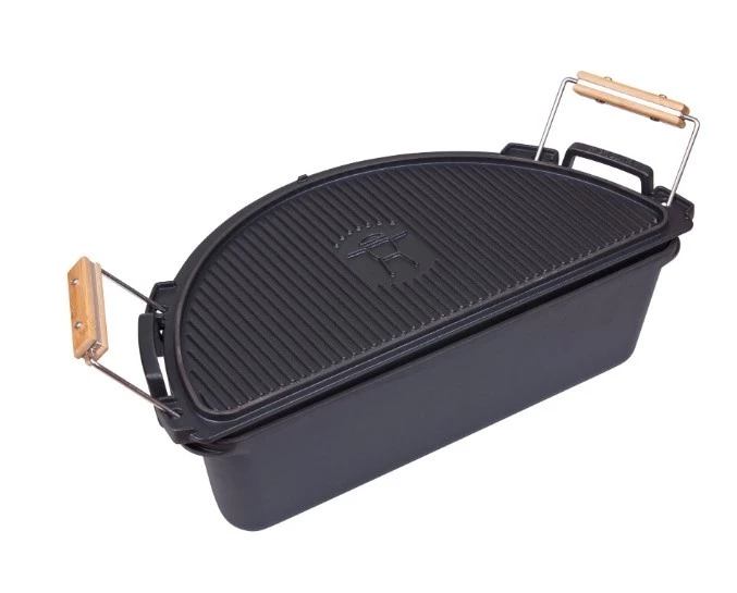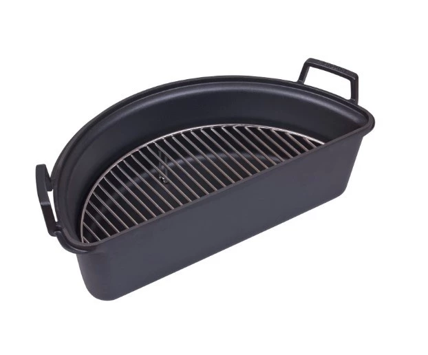 Die Monolith Feuerpfanne besteht aus robustem, 4 mm starkem Gusseisen und ist schwarz emailliert. Dies sorgt für Langlebigkeit und einen stilvollen Look in Ihrer Outdoor-Küche.