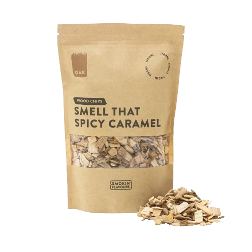 Smokin' Flavors Oak Smoke Chips, Packungsinhalt 1700 ml, verbreiten einen würzigen Duft mit kräftigen Aromen und leicht süßlichen Karamelltönen. Hervorragend zu fast allem kombinierbar, besonders perfekt zu Rindfleisch. Auch lecker mit Schweinefleisch. Diese Räucherchips sind für das Heißräuchern auf Ihrem Holzkohle- oder Gasgrill konzipiert. Für ein aromatisches Räuchererlebnis verwenden Sie eine Räucherbox oder streuen Sie eine Handvoll Chips in die Holzkohle. Eine vielseitige Ergänzung bei der Fleischzubereitung auf dem Grill mit Smokin' Flavors.