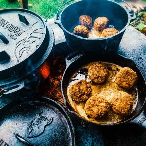 Diese Valhal Outdoor-Pfanne ist eine kompakte Pfanne. Eine Bratpfanne ist eine vollständig aus Gusseisen gefertigte Bratpfanne, die sich ideal für hohe Hitze und Wärmespeicherung eignet. Ohne Antihaftbeschichtung verhindert es Schadstoffe beim Backen. Gusseisen, das von Profiköchen geliebt wird, eignet sich für alle Wärmequellen im Innen- und Außenbereich. Mit einem Durchmesser von 15 cm und zwei Griffen ist diese kleine Pfanne praktisch auf dem Grill oder im Ofen und lässt mehr Platz. Perfekt zum Servieren von Tapas oder Vorspeisen, mit praktischen Ausgießern für Saucen. Gusseisen ist langlebig und gewinnt durch den Gebrauch an Charakter. Bei sorgfältiger Pflege hält diese Pfanne ein Leben lang; Durch wiederholtes Einbrennen bleibt es wie neu. Die Gusseisenartikel von Valhal Outdoor sind vorbehandelt, für optimale Ergebnisse wird jedoch ein zusätzliches Brennen empfohlen. Verwenden Sie das Valhal Outdoor-Wachs zur Pflege und zum Einbrennen von Gusseisen.
