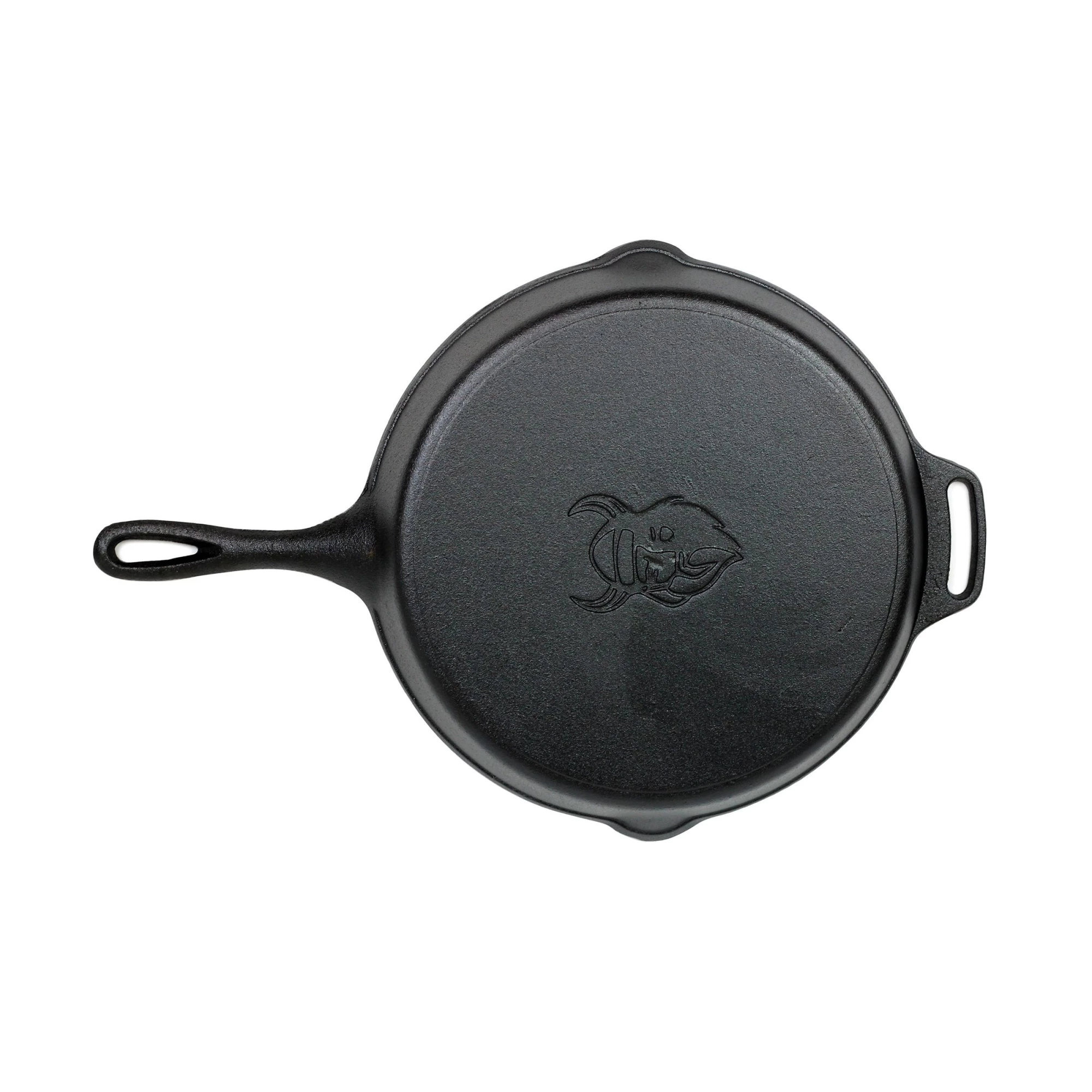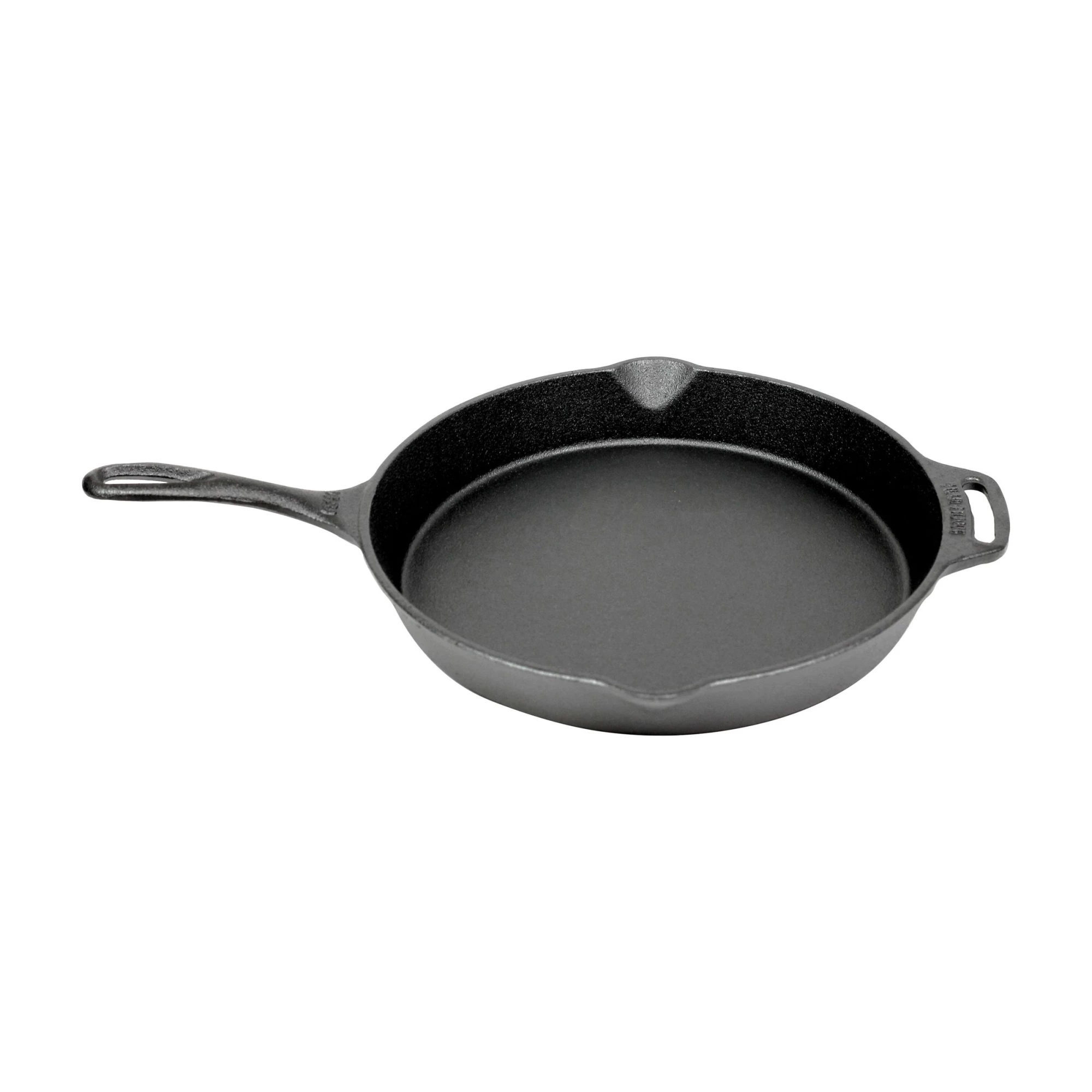 Viele Profiköche entscheiden sich aufgrund dieser Eigenschaften bewusst für eine Bratpfanne aus Gusseisen. Gusseisen ist für verschiedene Wärmequellen geeignet, sodass Sie die Pfanne sowohl drinnen als auch draußen verwenden können. Bei dieser speziellen Pfanne von Valhal Outdoor handelt es sich um eine Bratpfanne mit einem Durchmesser von 30 cm. Der Griff und der Griff machen die Pfanne einfach zu bedienen. Darüber hinaus verfügt die Pfanne über praktische Ausgießer, mit denen Sie Soßen oder Kochflüssigkeiten mühelos ausgießen können.