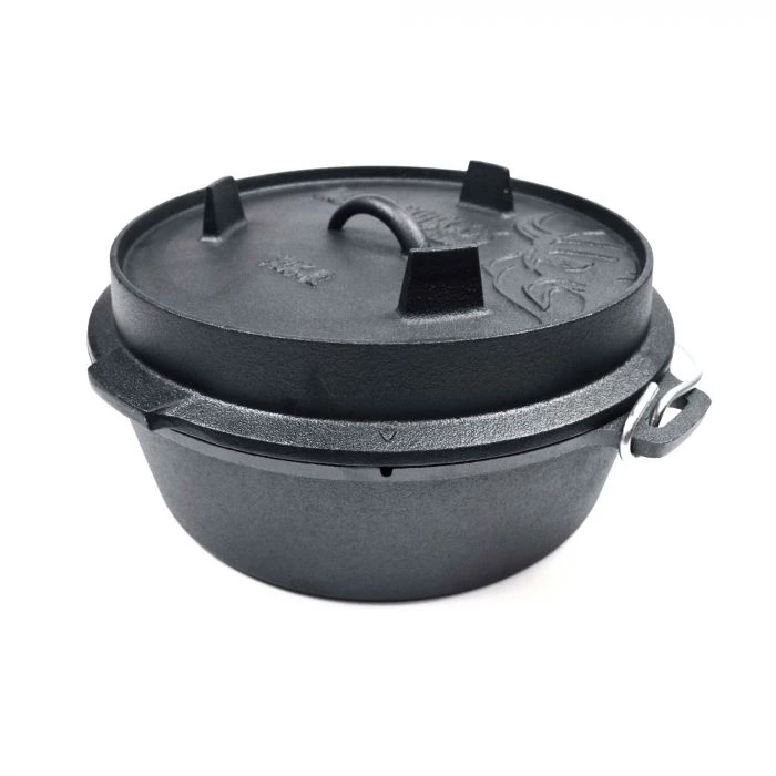 Der 6,1-Liter-Auflauftopf von Valhal Outdoor ist ein vielseitiger Dutch Oven aus Gusseisen. Ideal für verschiedene Gerichte, wie Eintöpfe und selbstgebackenes Brot. Durch das clevere Design lässt sich der Deckel auch als Bratpfanne nutzen, beispielsweise perfekt für die Zubereitung von Steaks. Diese Pfanne hat einen flachen Boden, sodass sie problemlos im Ofen verwendet oder auf einen Grill gestellt werden kann. Neben dem Design trägt auch das langlebige Gusseisen zur Vielseitigkeit bei. Bei richtiger Verwendung und Wartung hält Gusseisen ein Leben lang und ist für jede Wärmequelle im Innen- und Außenbereich geeignet. Dank der Fähigkeit von Gusseisen, hohe Temperaturen zu erreichen und aufrechtzuerhalten, können Sie es auf dem Herd oder Grill verwenden. Alle Gusseisenprodukte von Valhal Outdoor sind mit natürlichem Öl vorbehandelt, sodass Sie sofort loslegen können. Für optimale Ergebnisse empfehlen wir, das Gusseisen selbst noch einige Male mit dem speziell für Gusseisen entwickelten Valhal Outdoor-Wachs einzubrennen. Entdecken Sie die Vielseitigkeit und Haltbarkeit des Valhal Outdoor Dutch Oven.