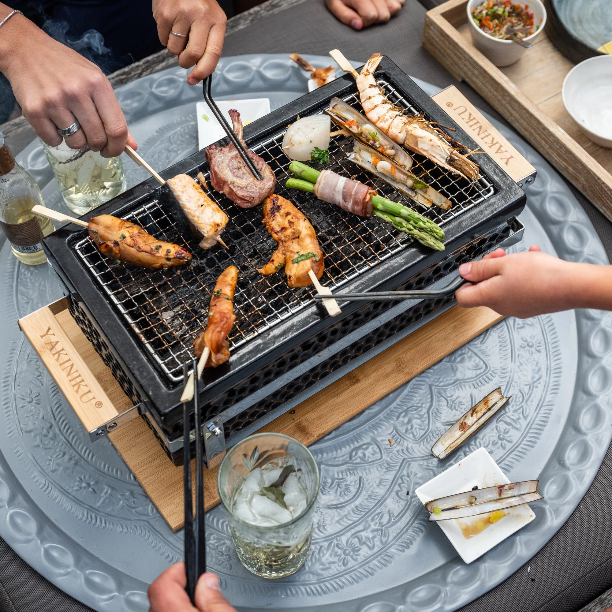Um Kreuzkontaminationen zu vermeiden, verwenden Sie zwei verschiedene Arten von Pinzetten. Die gerade Pinzette verwenden Sie für die rohen Zutaten und die gebogene Pinzette dient zum Herausnehmen der gegrillten Zutaten vom Grill. Diese gebogene Pinzette besteht aus extra starkem Edelstahlmaterial. Die Pinzette ist spülmaschinenfest.