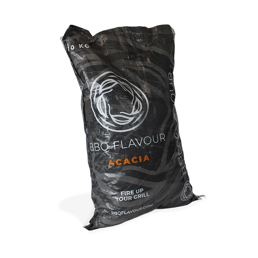 Die BBQ Flavour Holzkohle Akazie (10 kg) ist eine Premium-Holzkohle aus 100 % natürlichem Akazienholz. Diese Holzkohle zeichnet sich durch ihre harte Textur, lange Brenndauer und hohe Hitzeentwicklung aus und ist daher ideal für die Verwendung in Keramikgrills, Kamado-Grills oder offenen Grills.