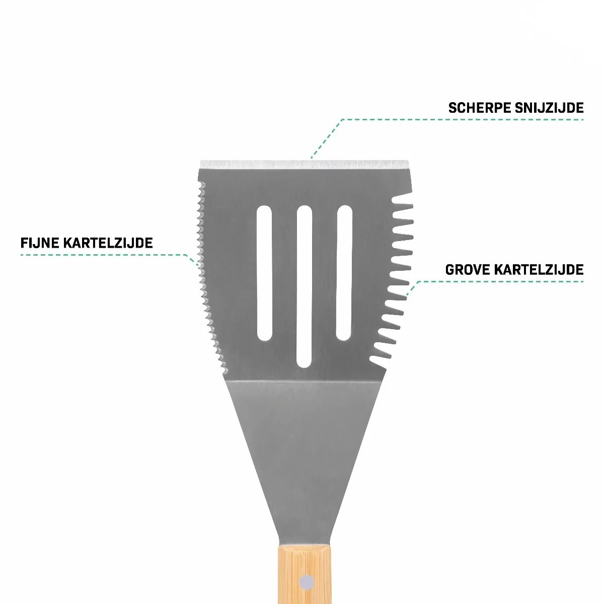 • Een multifunctionele spatel met snijrand