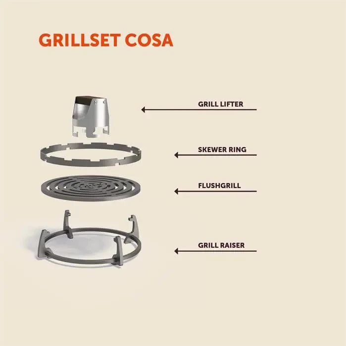 De SEARE Grillset is geïnspireerd door de bourgondische tradities van Zuid-Nederland, waar samen eten en gastvrijheid centraal staan. Deze set is ontwikkeld om diezelfde sfeer te creëren, met een nieuwe standaard in buitenkoken en genieten. Of je nu grillt, bakt of gewoon een gezellig vuur wilt stoken, de SEARE Grillset Cosa biedt de veelzijdigheid en kwaliteit die je nodig hebt om elke gelegenheid bijzonder te maken.