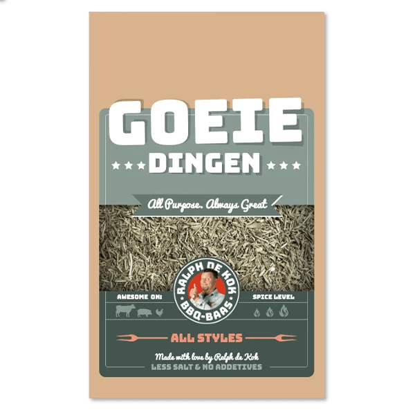 Ralph's Goeie Dingen ist eine niederländische Gewürzmischung des BBQ-Experten Ralph de Kok. Entwickelt wurde sie mit dem Ziel, dass Gewürze den Geschmack unterstreichen, ohne ihn zu überdecken. Die Mischungen sind salzarm und enthalten keine Füllstoffe, sodass der reine Geschmack der Zutaten voll zur Geltung kommt. Die gröbere Textur sorgt dafür, dass die Gewürze klar erkennbar bleiben und verleiht den Gerichten eine besondere Textur. Sie sind vielseitig einsetzbar und eignen sich für Hähnchen, Schweinefleisch, Rindfleisch, Fisch und Gemüse. Mit Ralph's Goeie Dingen erhalten Sie eine durchdachte, authentische Würzmischung für perfekte Grillergebnisse.