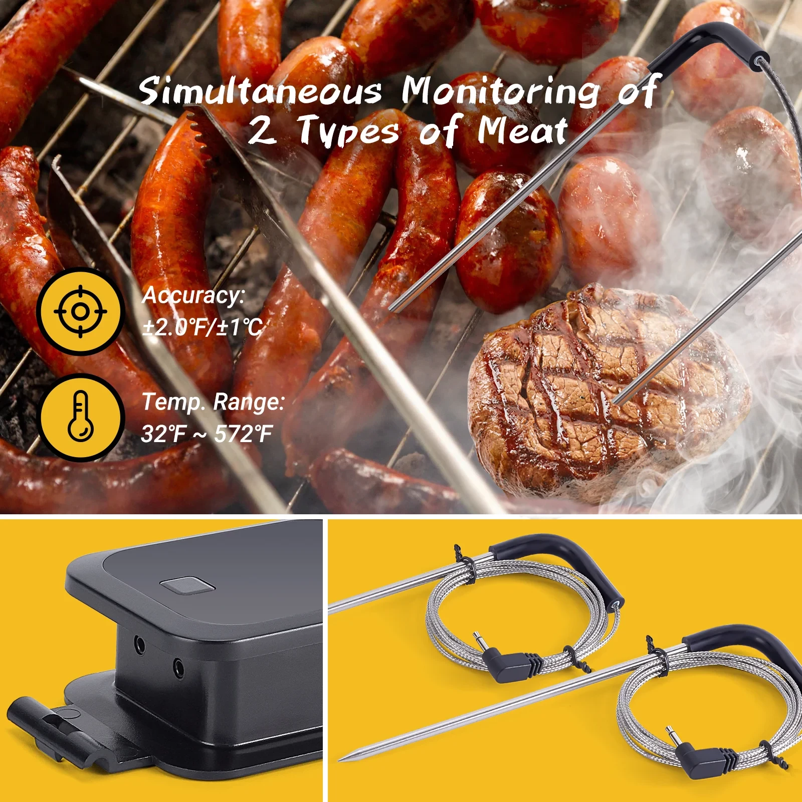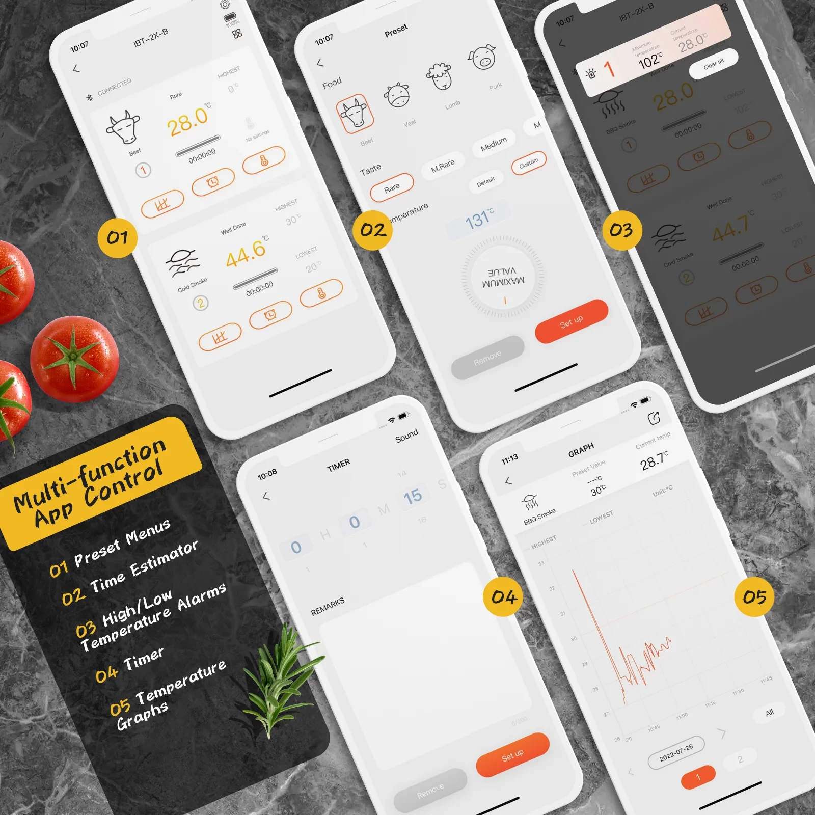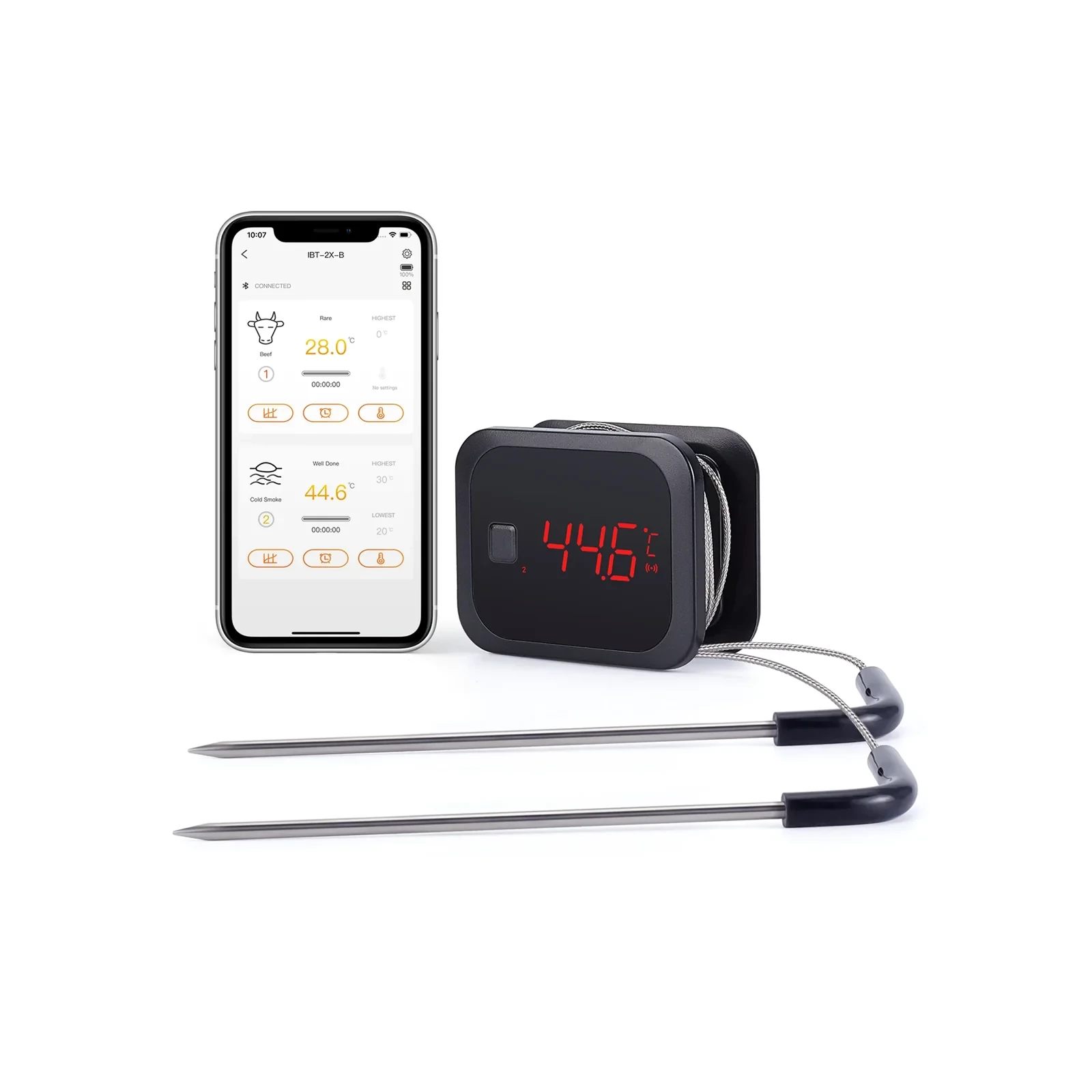 Veiligheidsalarmen: De INKBIRD IBT-2X ondersteunt alarmen voor ingestelde hoge en lage temperaturen. Zodra de gedetecteerde temperatuur de ingestelde hoge of lage temperatuur bereikt, wordt het alarm geactiveerd en wordt er een melding naar uw mobiele telefoon gestuurd om u te waarschuwen. Dit is veel veiliger en efficiënter in gebruik.