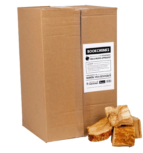 Smokin' Flavours Rookchunks Apfel, erhältlich in einer 5-kg-Packung, verströmt einen leichten Fruchtduft mit Nuss-, Lakritz- und getrockneten Rosinenaromen. Diese Stücke enthalten auch leichte Lakritzextrakte. Köstlich in Kombination mit Fisch, Huhn und Schweinefleisch. Ideal für langanhaltendes Rauchen und perfekt für langsames Garen. Legen Sie einfach einen oder mehrere Brocken trocken in die Holzkohle und lassen Sie diese einige Stunden lang ruhig rauchen. Eine schmackhafte Ergänzung zu Schweinefleisch, Fisch und Geflügel. Erleben Sie die subtilen Aromen mit Smokin' Flavors.