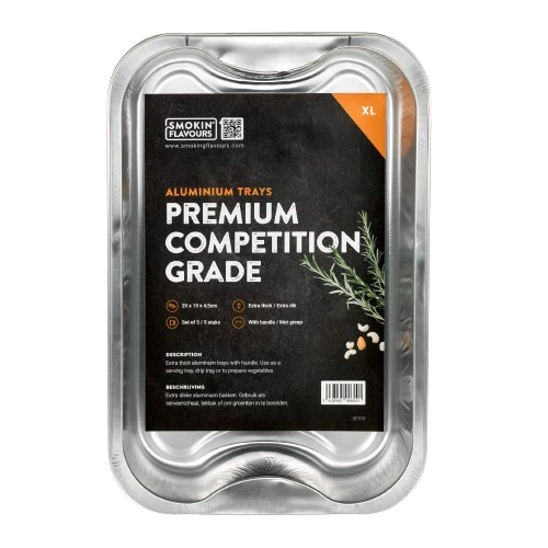 Smokin' Flavors XL Aluminiumbehälter – 5er-Set Diese robusten Aluminiumbehälter, verpackt zu je 5 Stück, sind extra dick und eignen sich als Servierschale, Abtropfschale oder zum Zubereiten von Gemüse. Abmessungen: 29 x 19 x 4,5 cm.