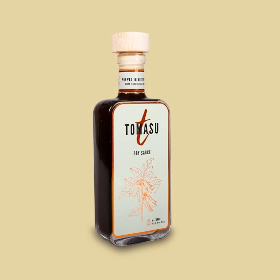 De Tomasu Soy Sauce Sojasaus (100 ml) is een kleine fles met een grote smaak. Deze sojasaus wordt ambachtelijk geproduceerd door Tomasu in Rotterdam, de enige sojasausbrouwerij in Europa die volledig eigen sojabonen en tarwe teelt. Door een traditioneel fermentatieproces van minimaal 24 maanden ontstaat een diepe, ronde smaak met een perfecte balans tussen zout en umami.