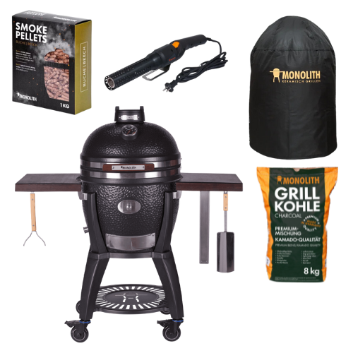 Das Monolith Avantgarde.66 Starterset bietet alles, was Sie für den sofortigen Einstieg ins Kamado-Grillen benötigen. Das Set beinhaltet den Avantgarde.66 Grill (LeChef), einen Schnellzünder (Mono-Lighter), hochwertige, FSC-zertifizierte Holzkohle, Buchenholz-Räucherpellets und eine robuste Schutzhülle aus Oxford-Nylon.